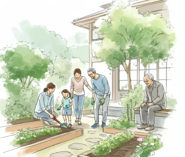 ガーデニングが楽しめる植栽環境と水はけのよい土壌設計